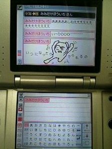 うわーい 2006/10/19 2018/6/10 絵と奇声 近所の中古屋にて新品同様のDSを発見したので即買ってきてしまった ピクトチャット面白いぜ DSliteはデザインが余り好きじゃないからこっちで十分さ^^ そしてポケモンパールだけ予約受付中だたから予約してきたwww明後日に入荷するらしいwwwやったwwwwwww