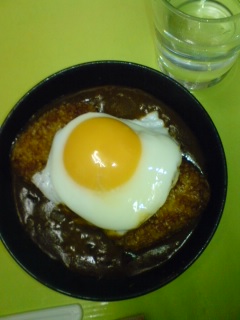 目玉焼きおにぎりカレー(^ゑ^)